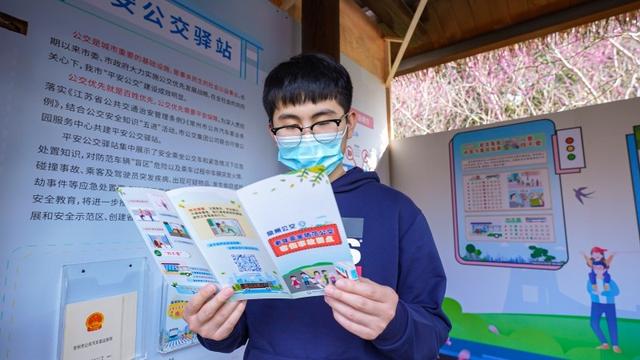 平安公交驿站设置在游客赏花主通道,利用临时搭建的桃花亭集中展示安全乘坐公交车和紧急情况下应急处置常识,对防范车辆“盲区”危险以及乘车过程中车辆突发火情、碰撞事故、乘客及驾驶员突发疾病、出现可疑物品、发生偷窃或抢劫事件等应急处置要点进行宣传,方便市民在游园赏花及驻足休憩时接受安全教育。平安公交驿站提供《常州市公共汽车客运条例》《学生安全乘坐公交指南》《老年人防范公交客伤事故要点》等宣传折页,市民还可通过二维码观看《老年乘客防客伤事故》动漫和《公交车应急逃生设备操作指南》宣传片。