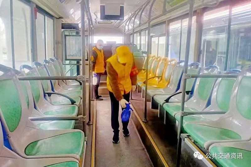合肥公交集团第一巴士公司职工认真对车辆进行消毒。(高鸿斌 供图)