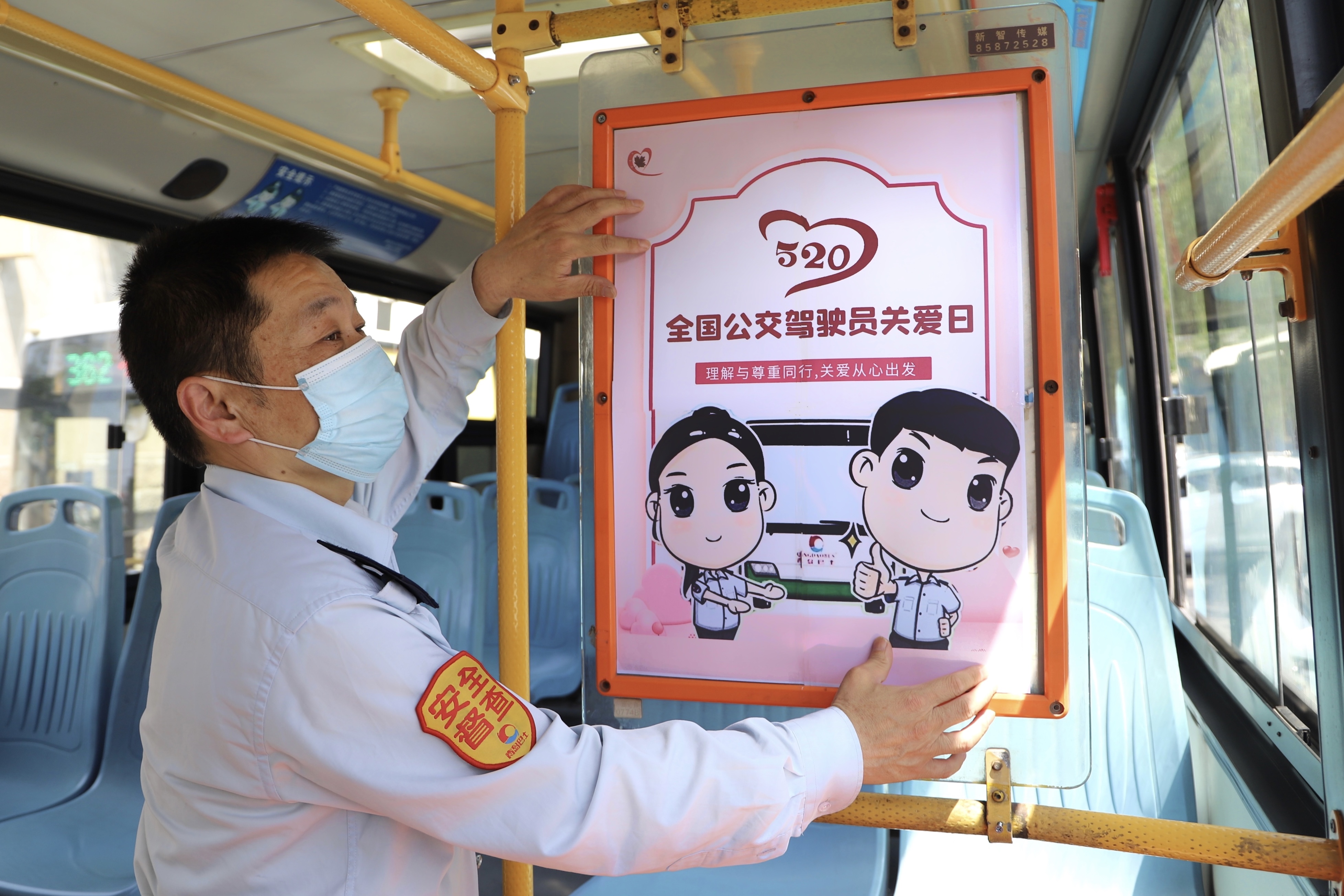 青岛城运控股公交集团361路推出“520公交驾驶员关爱日”主题车厢。