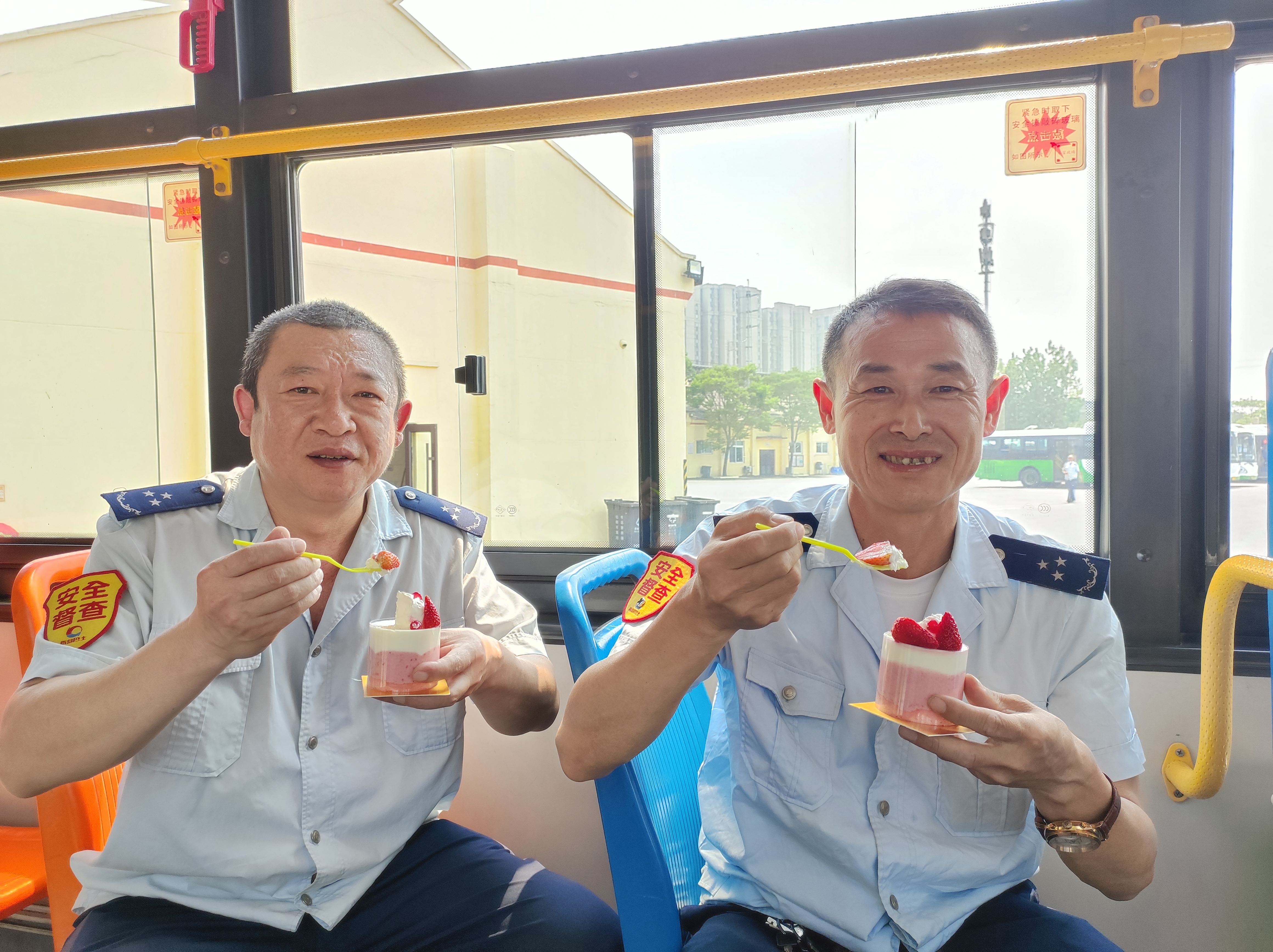 青岛城运控股公交集团市北巴士第七分公司为驾驶员送上蛋糕和节日祝福。