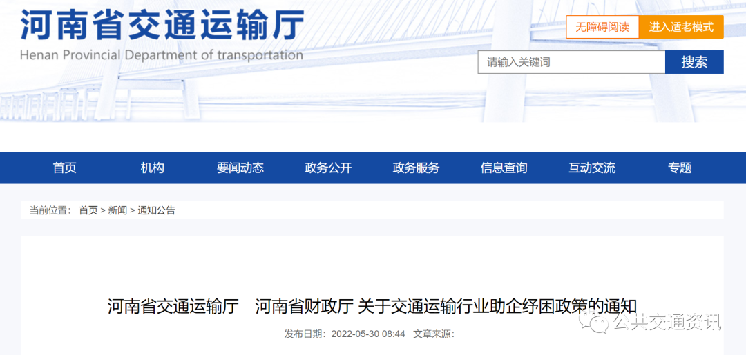 河南省交通运输厅河南省财政厅关于交通运输行业助企纾困政策的通知