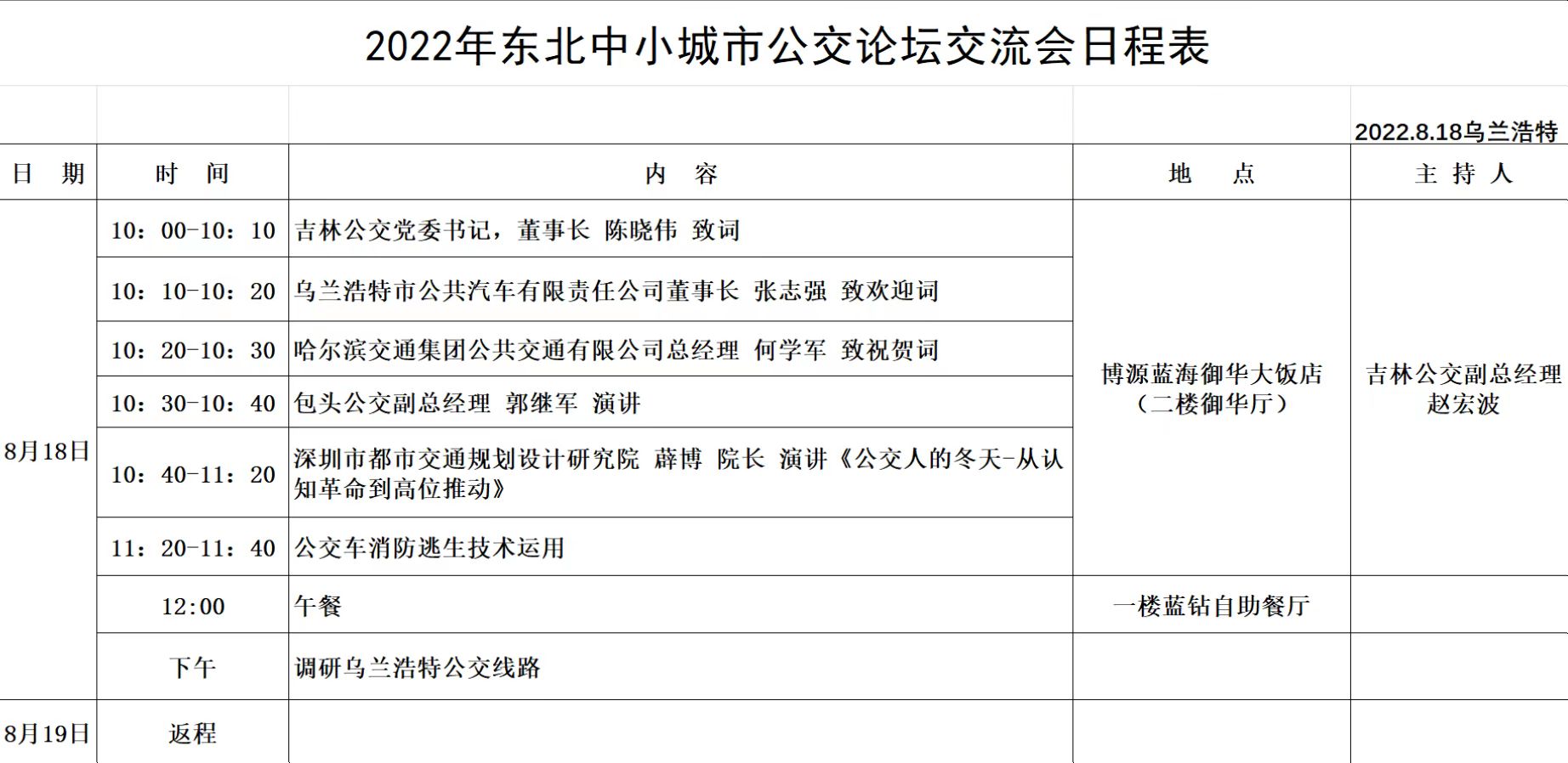 一汽智慧客车暨2022吉林省公交协会年会,2022东北公交论坛于2022年17日~19日内蒙古自治区乌兰浩特市召开,会议由吉林省公交协会,中国公交信息网联合主办,乌兰浩特公交有限责任公司协办,来自吉林,黑龙江,内蒙古公交同行一起莅临参会,会议期间参观一汽智慧客车并座谈交流,还聘请深圳市都市交通规划设计研究院薛博院长作了《公交人冬天— 以认知变革,求生存发展》的主旨演讲,另外还考察乌兰浩特公交路线和厂站建设!