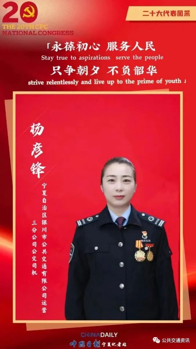 今年,她被推选为党的二十大代表。杨彦锋说作为一名共产党员,我愿意为乘客一直服务下去。(中国日报宁夏记者站 胡冬梅 海报 巩梦怡)