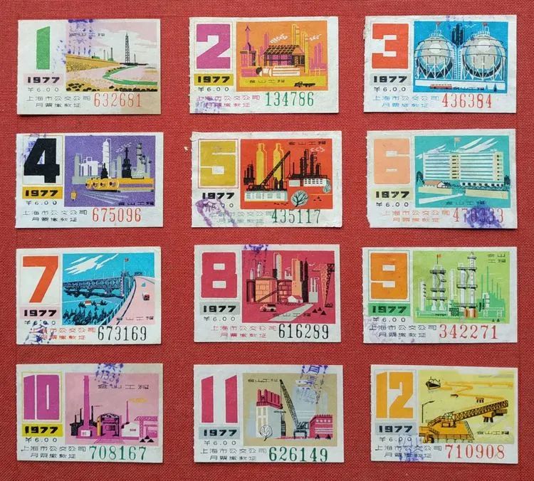 1977年上海公交月票上第一次出现了以上海石油化工总厂的“金山工程”为全年月票花的表现内容。