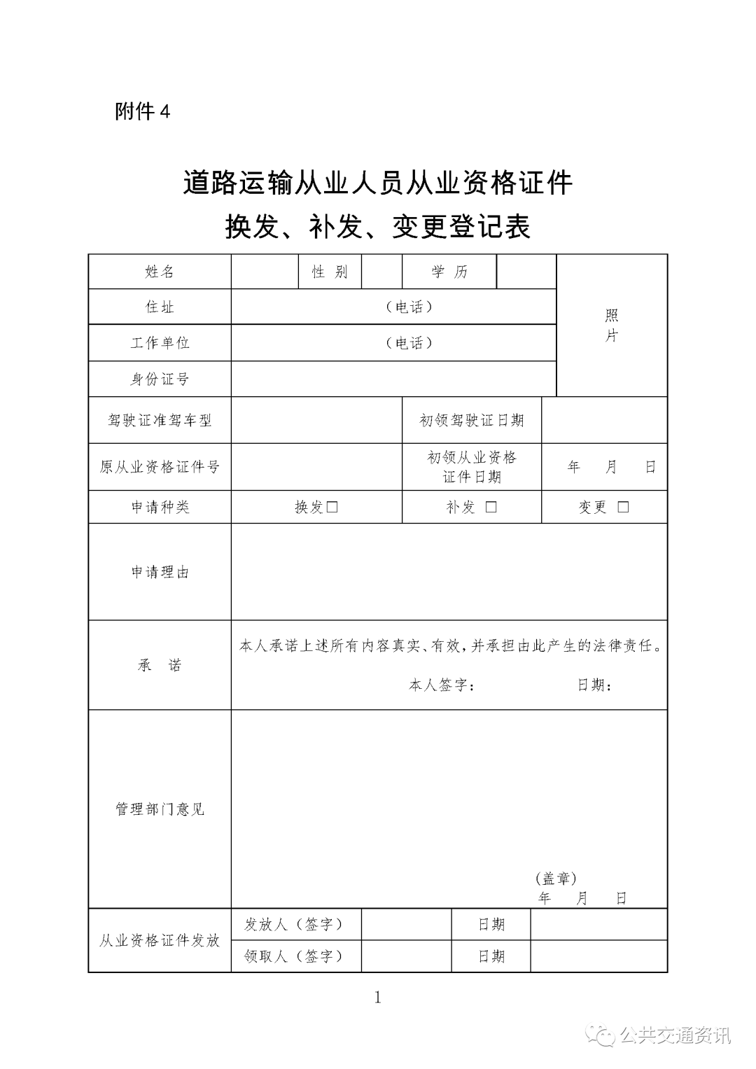 第三十条 道路运输从业人员办理换证、补证和变更手续,应当填写《道路运输从业人员从业资格证件换发、补发、变更登记表》(式样见附件4)。