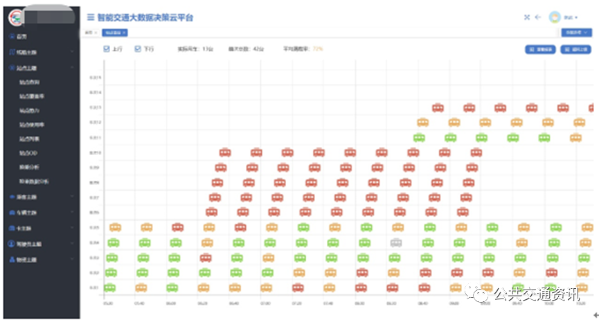 精准排班模块是利用历史客流数据与企业营运排班表相结合,在线模拟营运,还原每日线路排班计划的营运结果的板块。模拟营运的结果可还原每一站的上车客流数值以及每辆车的满载率,从而反应出当前排班的效果,该功能也可在线优化排班结构,重新模拟营运直至获得最优的营运结果。该功能可有效提高运营人员进行排班优化的效率。通过精准匹配营运计划,实现精细的管理,减少低效率的作业计划,杜绝“空车拉板凳”现象,实现降本增效的目标。