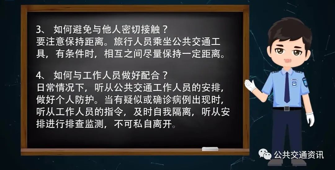 日常情况下,听从公共交通工作人员的安排,做好个人防护。当有疑似或确诊病例出现时,听从工作人员的指令,及时自我隔离,听从安排进行排查监测,不可私自离开。