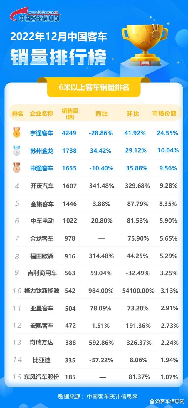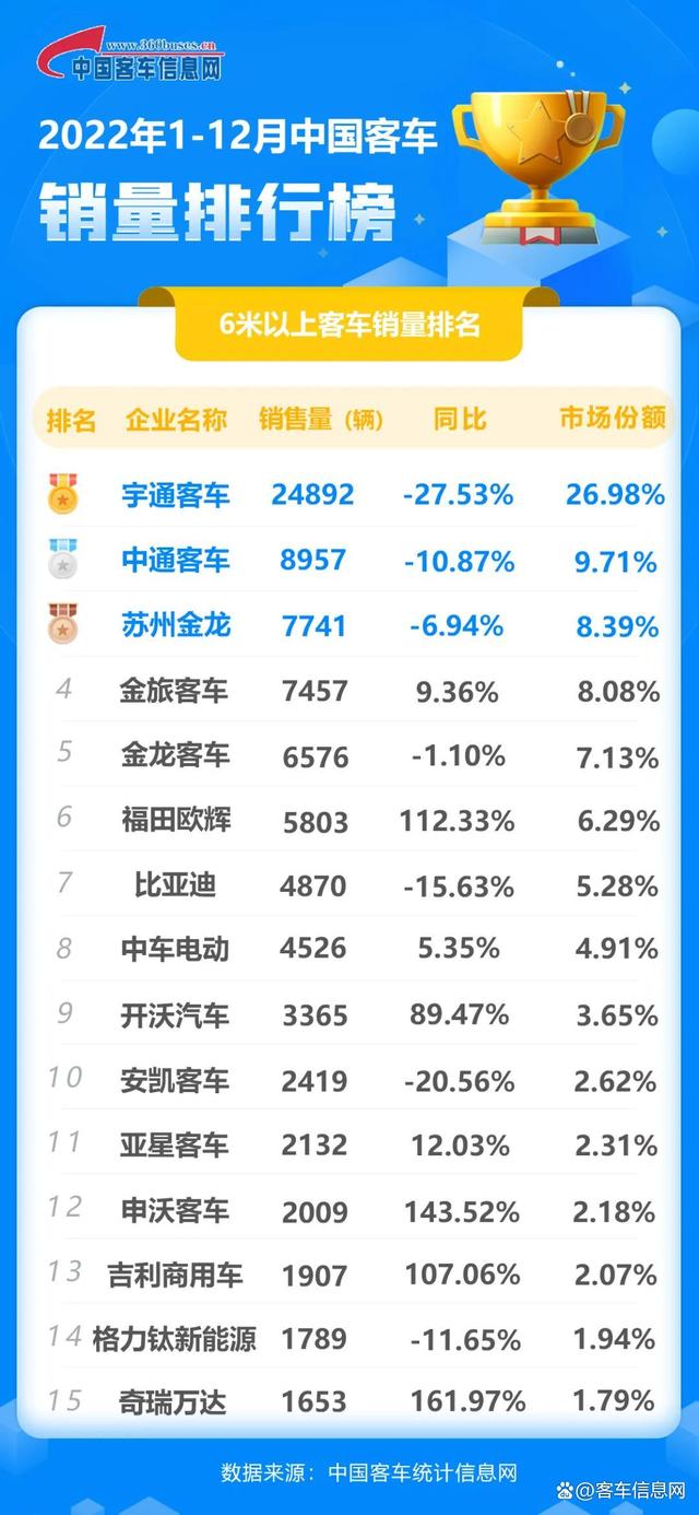 2022年度中国6米以上客车销量排行榜正式出炉!