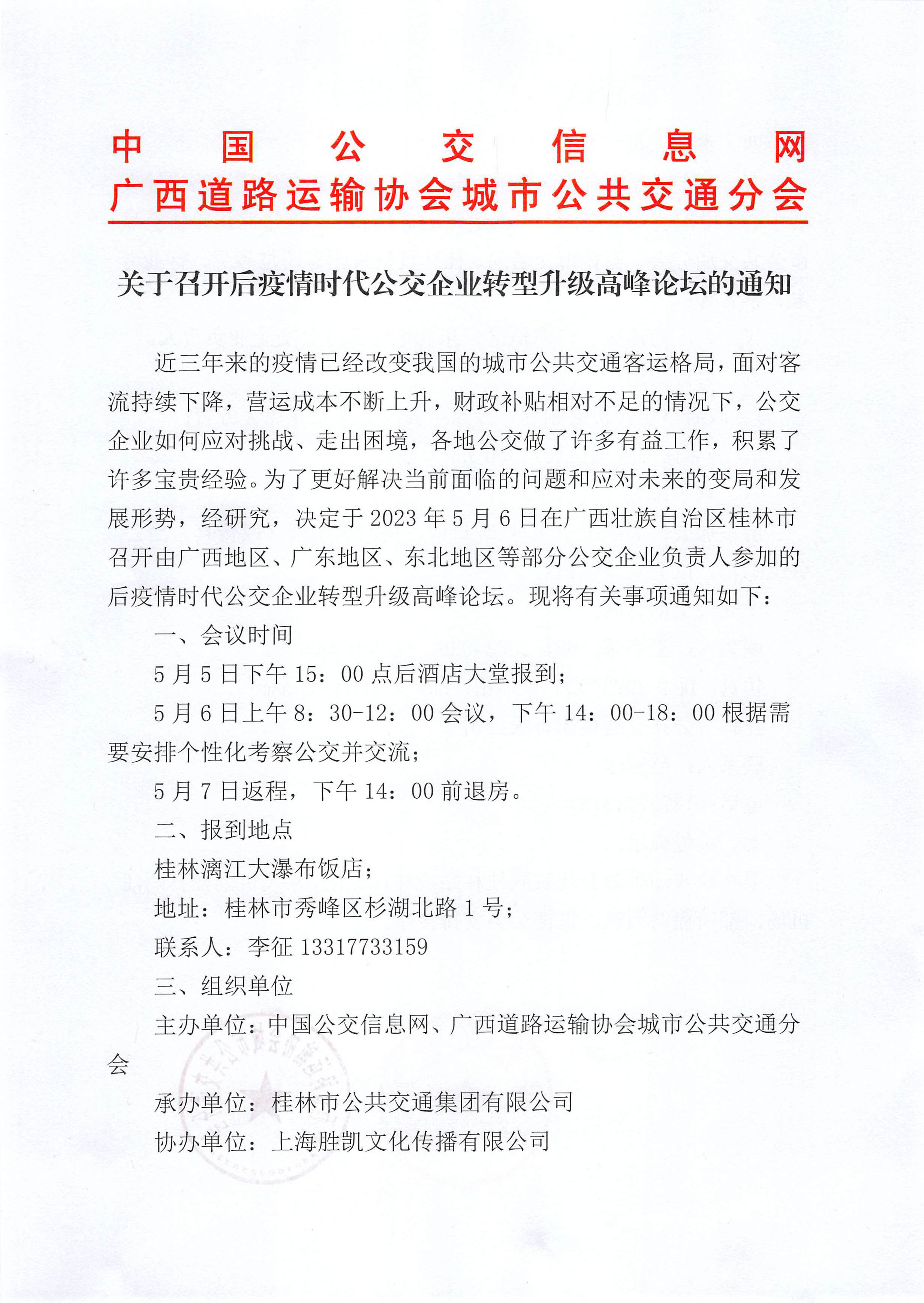关于召开后疫情时代公交企业转型升级高峰论坛的通知