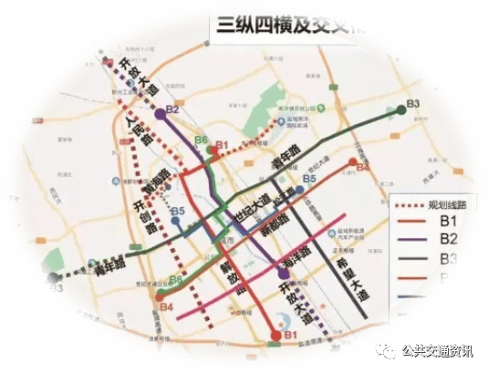盐城市区公交线网优化正式启动,开通B4、B5、B6路,推动形成两横两纵“井”字形+环形的快速公交主走廊体系;