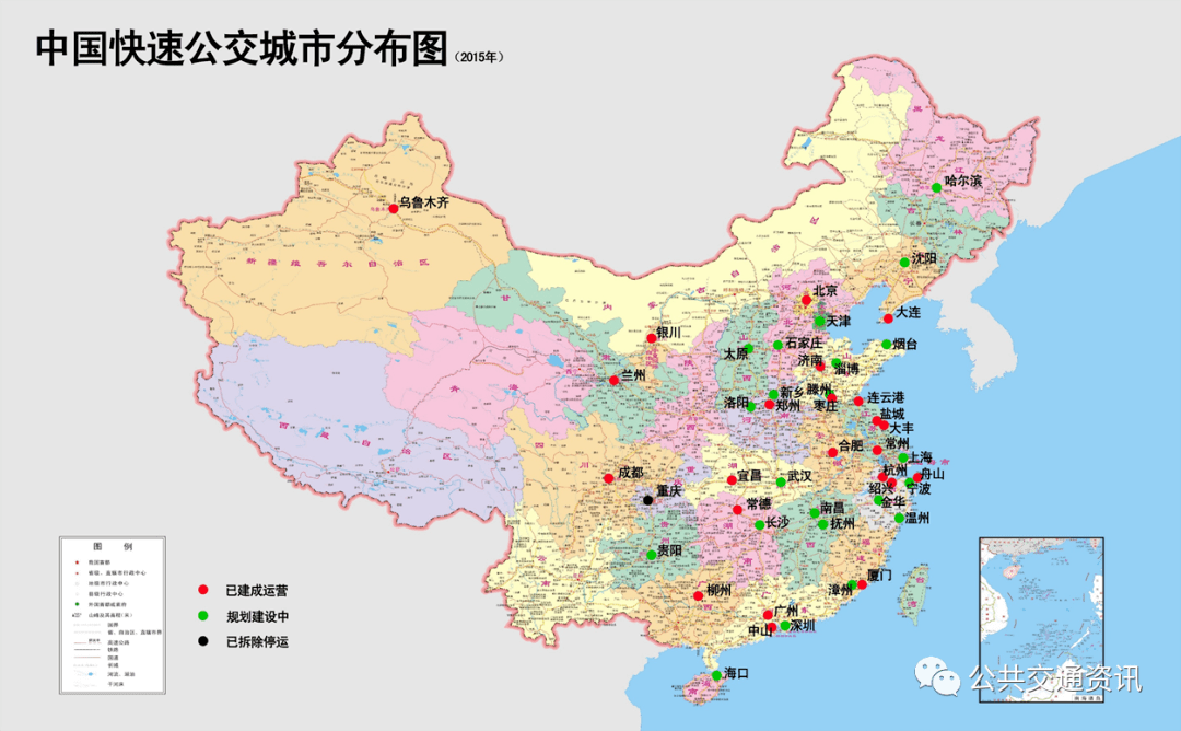 下面大家看到的这幅图,是中国快速公交城市分布图(2022版),图中可以直观的看到全国快速公交的建设、规划情况,其中浙江、江苏和山东是快速公交建设开通最多的三个省份。