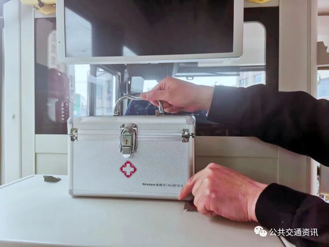 驾驶员在车厢里放置急救箱