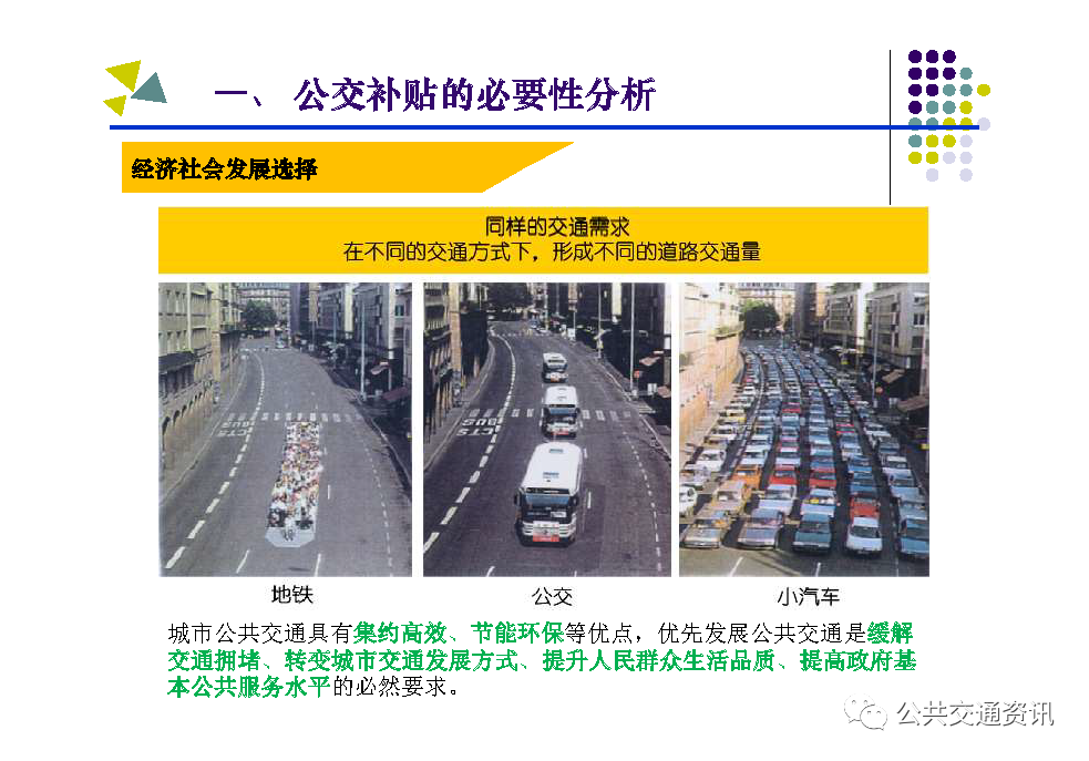 三是公共交通具有集约高效、节能环保等明显优势,优先发展公共交通是缓解交通拥堵、转变城市交通发展方式、提升人民群众生活品质、提高政府基本公共服务水平的必然要求。
