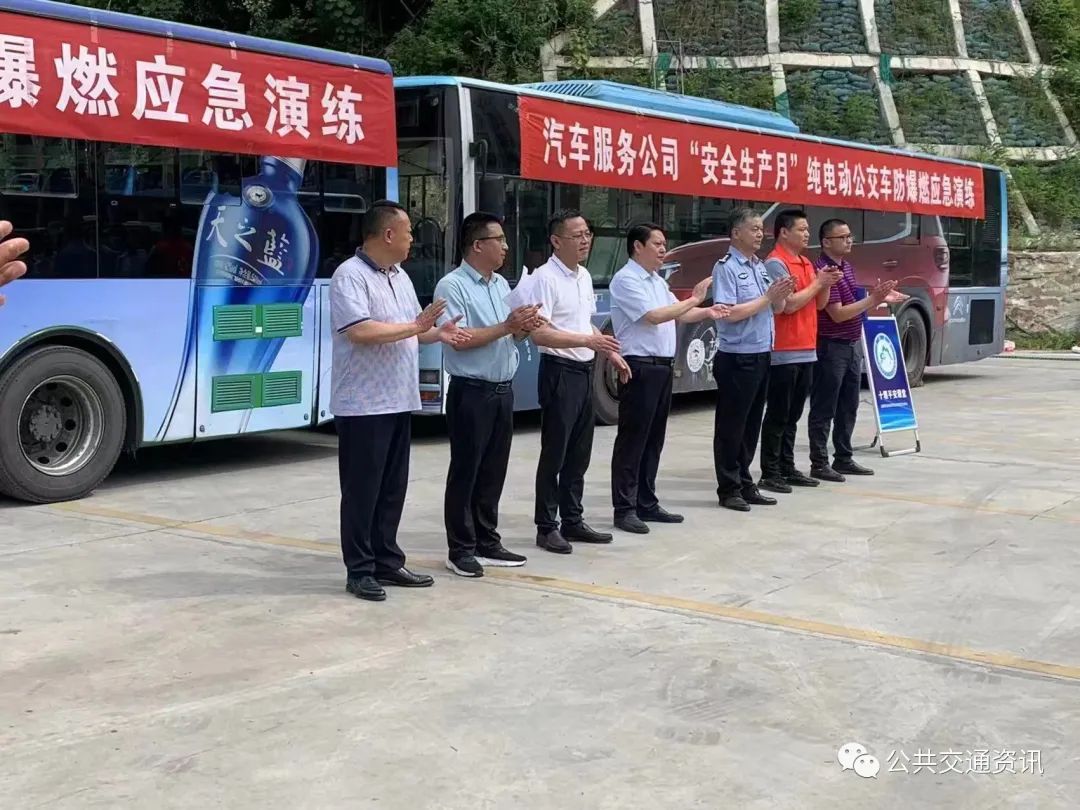 此次演练主要针对纯电动公交因高温起火的突发火灾的应急处置,从公交车火灾的发现、火灾的初期处置、灭火器的使用、现场的封锁、突发事件应急通信、消防部门的紧急施救、医疗部门对伤员的紧急救治等方面进行了全方位演练。为确保演练场景的真实性,十堰公交三公司结合公交运营实际情况制定详细演练方案,最大化的还原公交营运期间可能遇到的真实突发紧急情况。