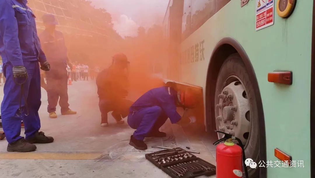 公交车在正常行驶途中,驾驶员王小刚发现公交车的电池仓部位起火,他立即停车,拉住手刹,关闭总电源,开启车辆应急开关,迅速宣传引导乘客从前后门疏散到安全区域,然后向119报警,发现伤员积极抢救,拨打急救120电话,取出随车携带的灭火器进行扑救,同时向车队领导报告情况,并保护现场,留下2名目击证人,协助警察开展调查。整场演练历时30分钟,在市消防部门、人民医院、公交三公司、汽服公司各部门紧密配合、协同作战,圆满完成了演练任务。