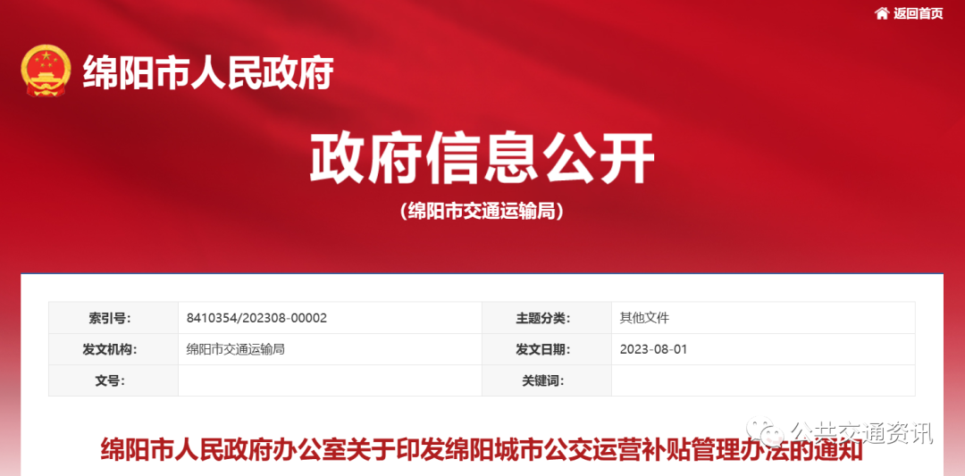为促进公交事业安全、健康、可持续发展,市人民政府对2017年制定的《绵阳城市公交主营亏损分担实施方案》进行了修订完善,印发了《绵阳城市公交运营补贴管理办法》(以下简称《管理办法》)。
