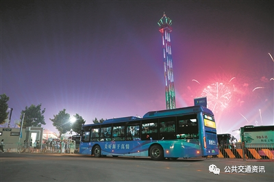 ■真情巴士啤酒节保障公交车穿梭在夜色中。