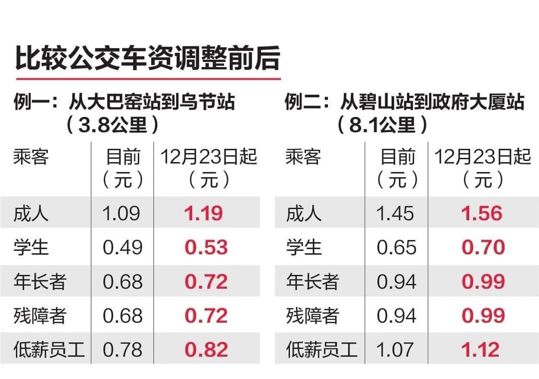 12月23日起,成人车资将上调1角至1角1分,是历来涨幅最高的一次。