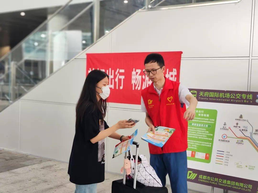“双节”期间,300余名成都公交志愿者们开展了“美好出行 畅游蓉城”志愿服务,在二环高架、巴士驿站、旅游集散地等100余个志愿服务点,为乘客提供咨询引导、秩序维护、携老扶幼等服务,累计服务时长约400余小时,服务乘客33000余人次。此外,志愿者们也在10月5日“绿色低碳出行日”,向市民游客宣传发放《成都公交服务手册》,倡导大家绿色低碳文明出行。