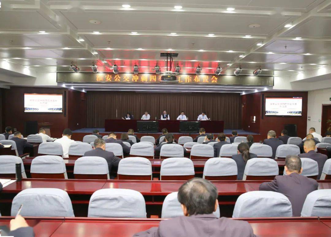 10月23日上午,淮安公交 召开“提振精气神 冲刺四季度”工作布置会,党委书记、董事长、总经理孙智敏出席会议并讲话,经营层领导、中层以上人员参加会议。