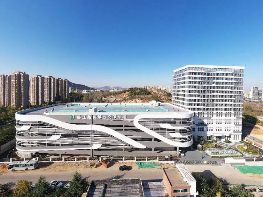 来到位于西海岸新区昆仑山南路与静江路交叉口东北侧的项目现场,记者看到,静江路智慧公交停车楼建筑外观呈流线型,大气美观,东侧为综合楼,西侧为立体停车楼。青岛真情巴士集团场站公司负责人陈雷介绍,该项目总投资约2.1亿元,占地面积约11097㎡,总建筑面积约43328.11㎡。主要建设内容为公交立体停车楼、维保车间、光伏发电、充电设备等,是目前山东省规模最大、功能最全的智慧化公交综合立体停车楼。