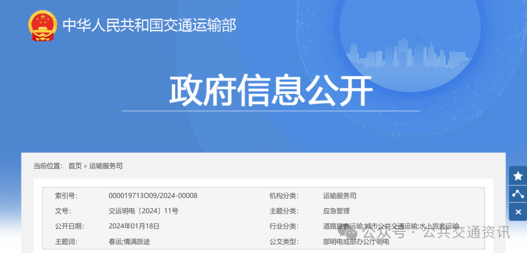 为进一步提升春运服务质量和水平,交通运输部、公安部、应急管理部、中华全国总工会、共青团中央决定,在2024年春运期间联合组织开展“情满旅途”活动。现将有关事项通知如下: