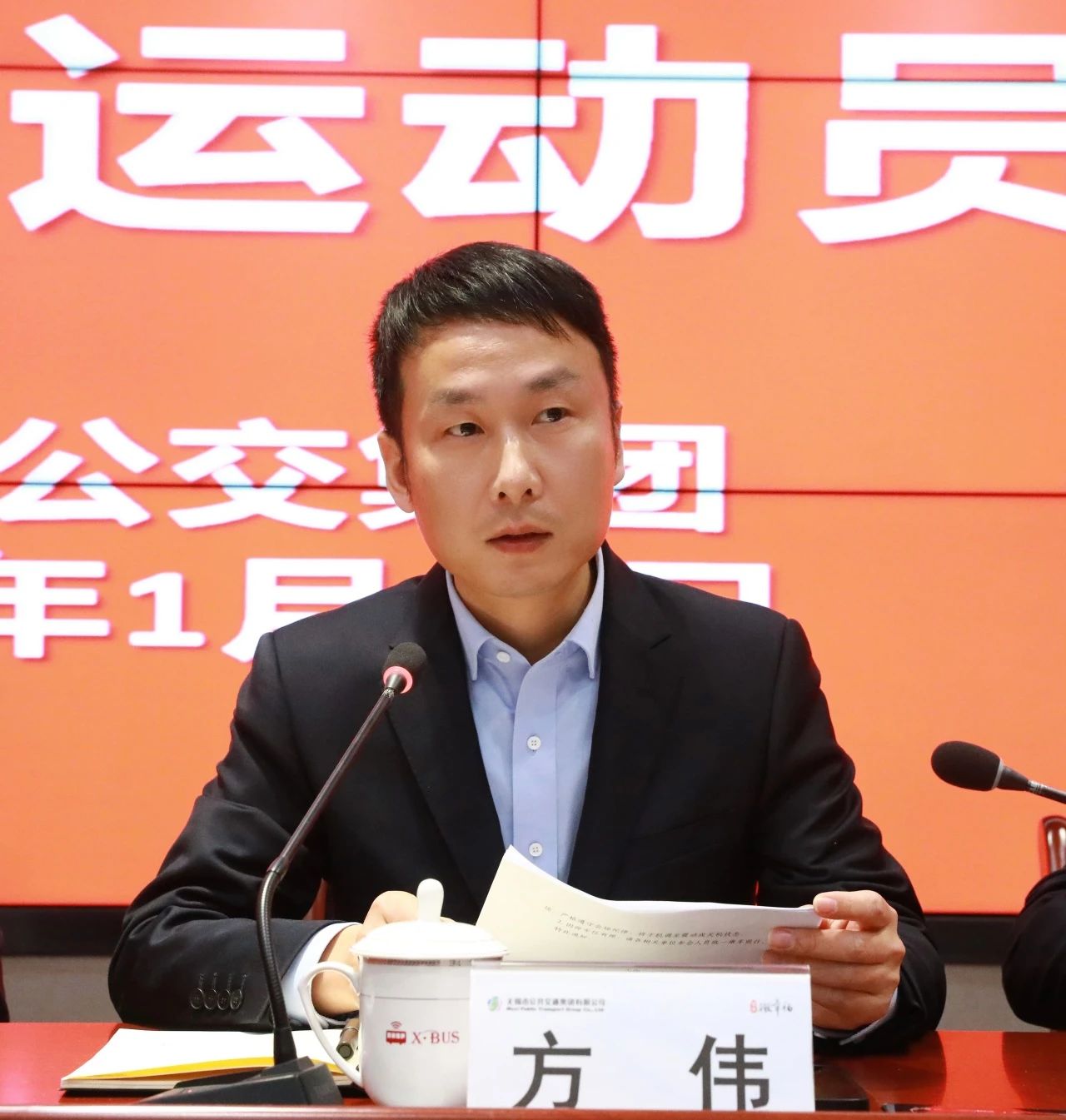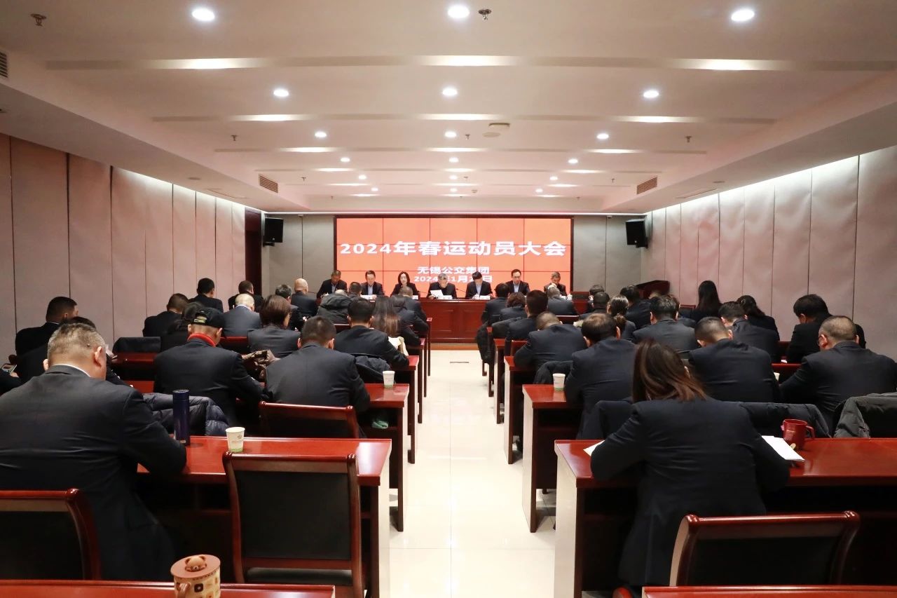 1月23日,无锡公交集团召开2024年春运动员大会。集团公司党委书记、董事长张欣,总经理方伟等领导班子成员,各基层单位经理、书记(副书记)、安全副经理,公司各部门经理参加会议。会议由集团公司党委副书记、工会主席倪洁主持。