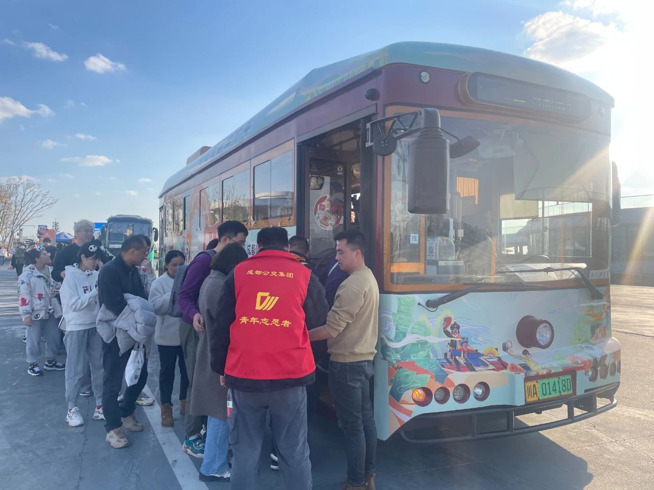 成都公交积极跟进春节“1+16+N”系列城市文化活动,按照“一区域一方案”原则,制定相关节日文体活动应急运输方案,加密周边接驳线路运力投放,并根据客流监测情况及时调整发车频率。