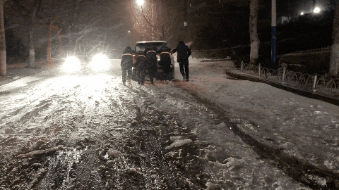 2月22日凌晨两点,真情巴士应急抢险人员正在忙碌着。从深夜到日出,他们整夜都不曾“合眼”,出动抢险人员381人次、抢险车辆78台、除雪机械2台,撒布融雪剂25.1吨。