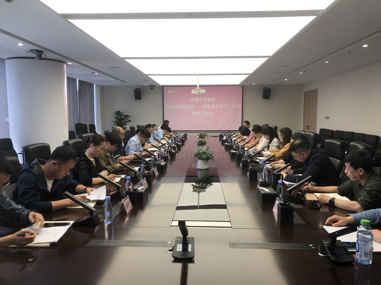 为贯彻落实习近平总书记关于安全生产重要指示批示精神,全面落实中、省、市、西咸新区和西咸集团安全生产工作会议部署,扎实推进安全生产治本攻坚三年专项行动,4月11日,西咸公交集团组织召开2024年一季度安全生产、环境保护工作会,集团党总支书记、董事长、安委会主任刘滢主持会议并讲话,党总支副书记、总经理、安委会常务副主任彭小峰出席,其他领导班子成员,各部门、分公司、子公司主要负责人参加会议。