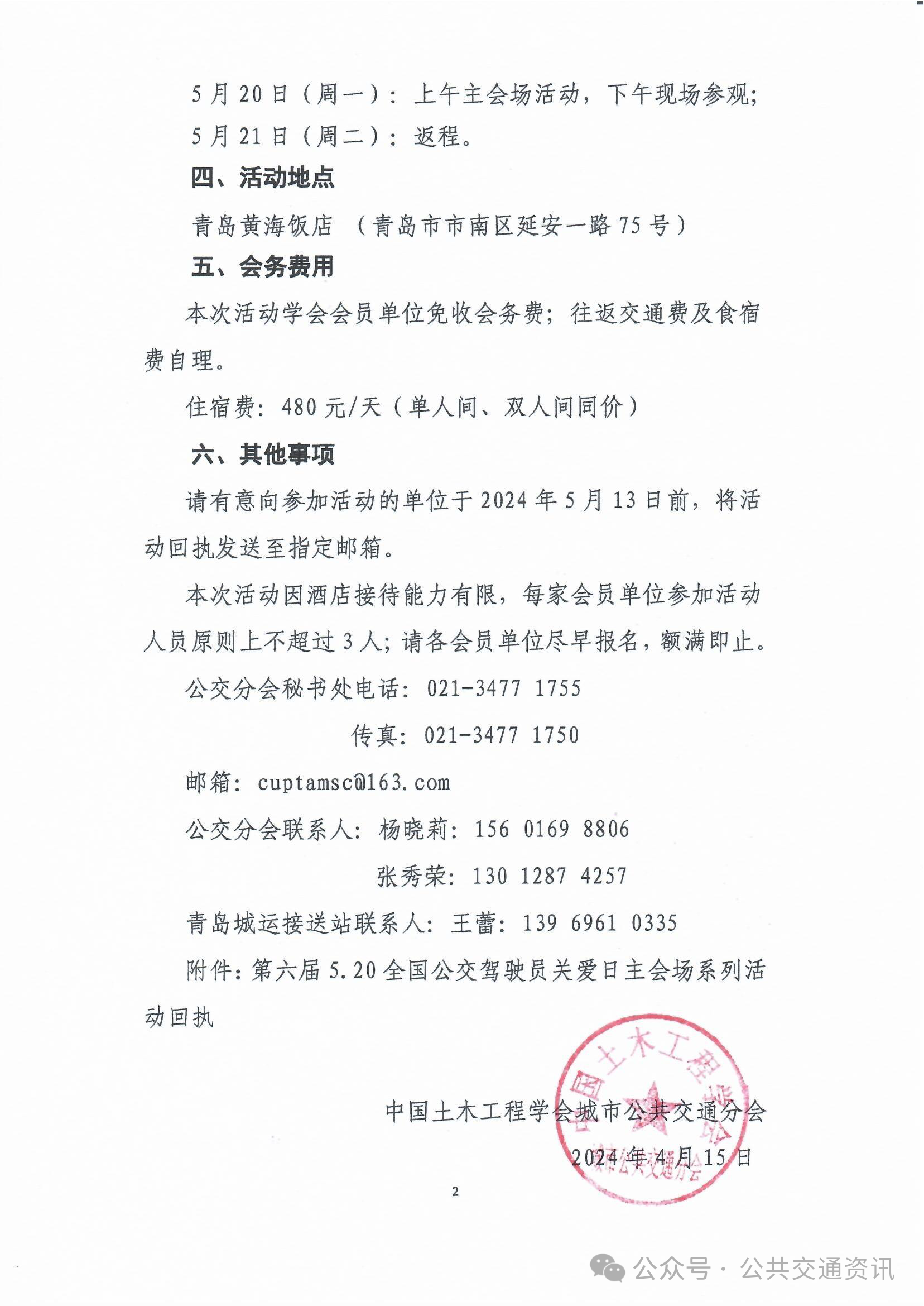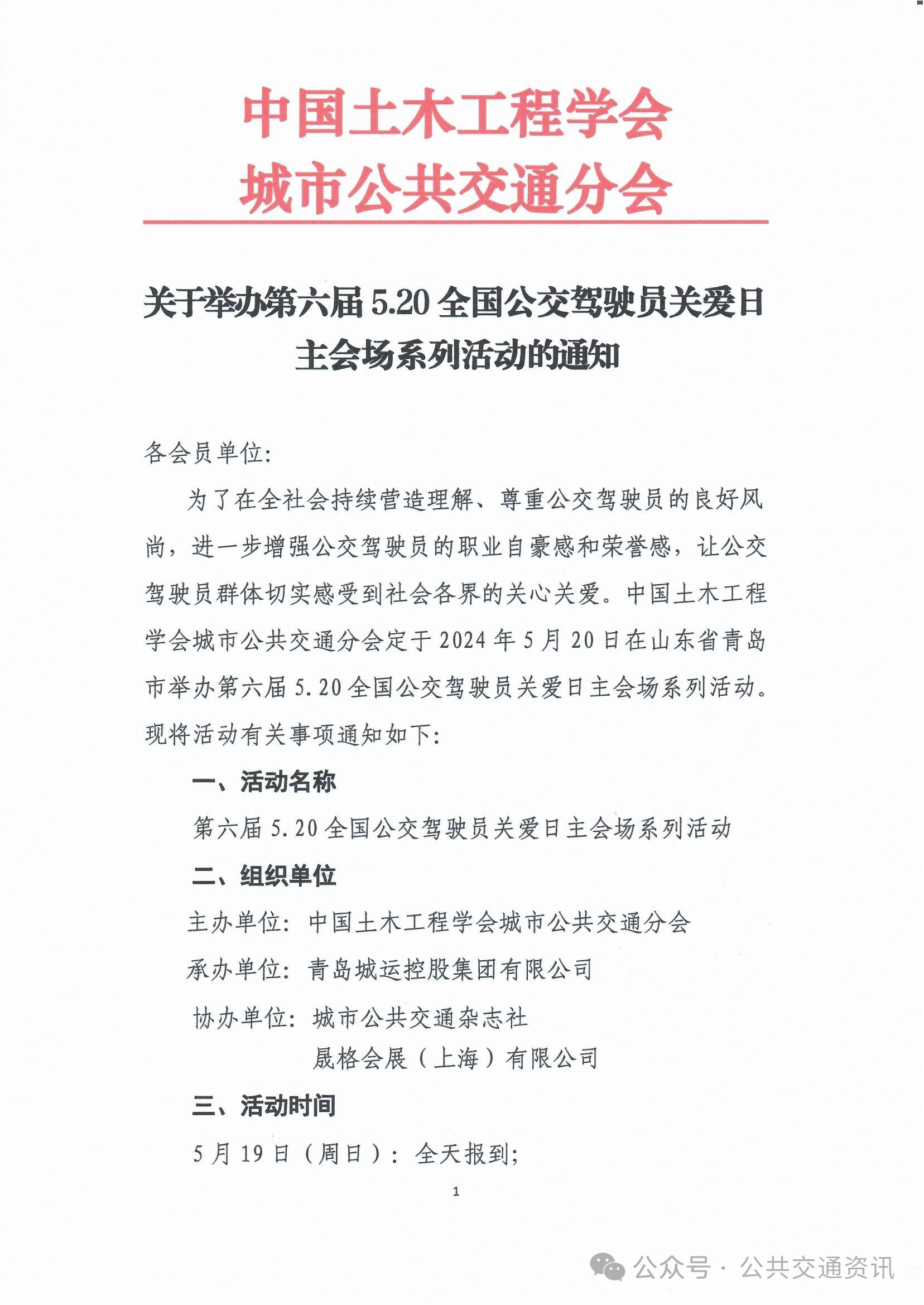 关于举办第六届5.20全国公交驾驶员关爱日主会场系列活动的通知