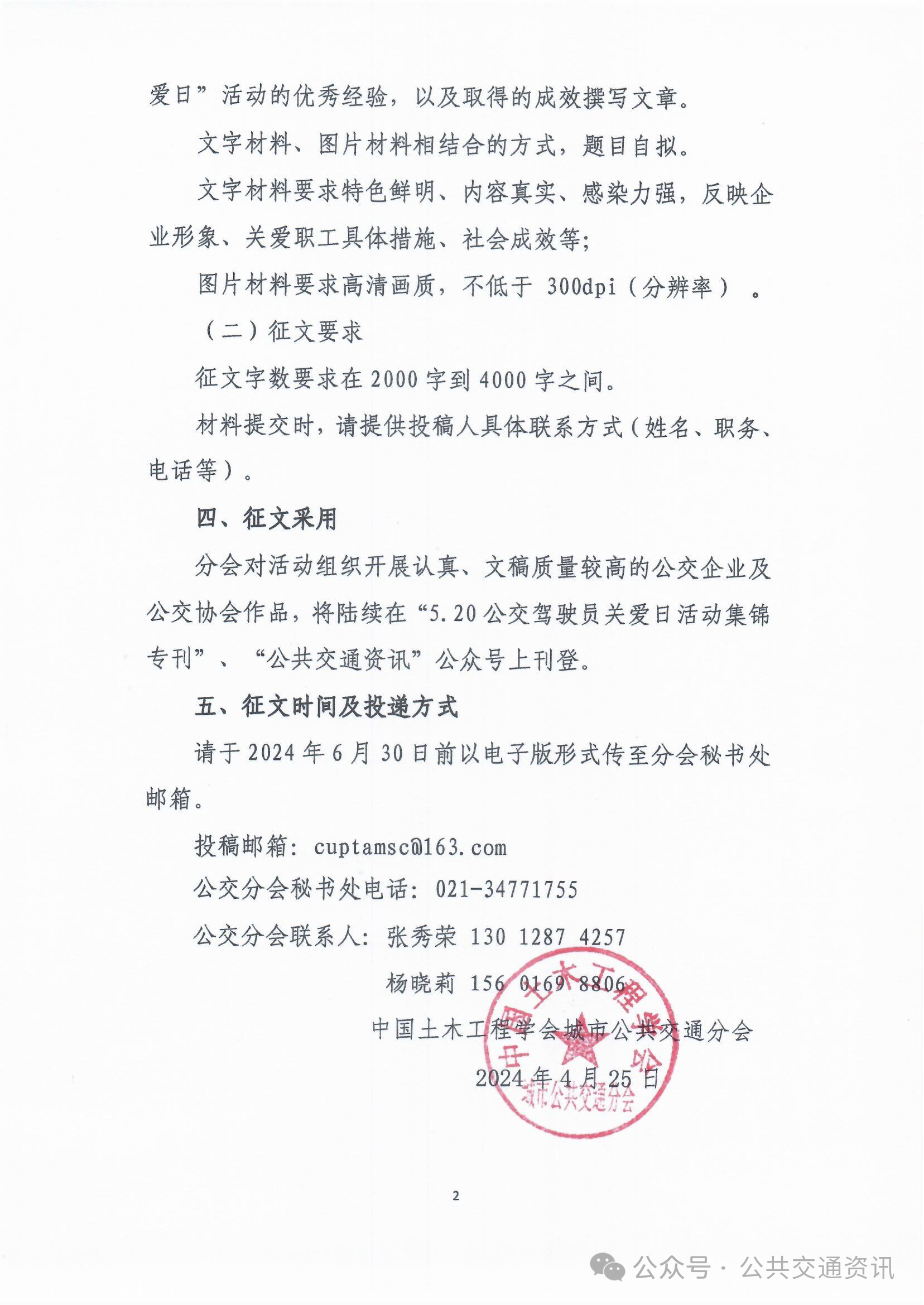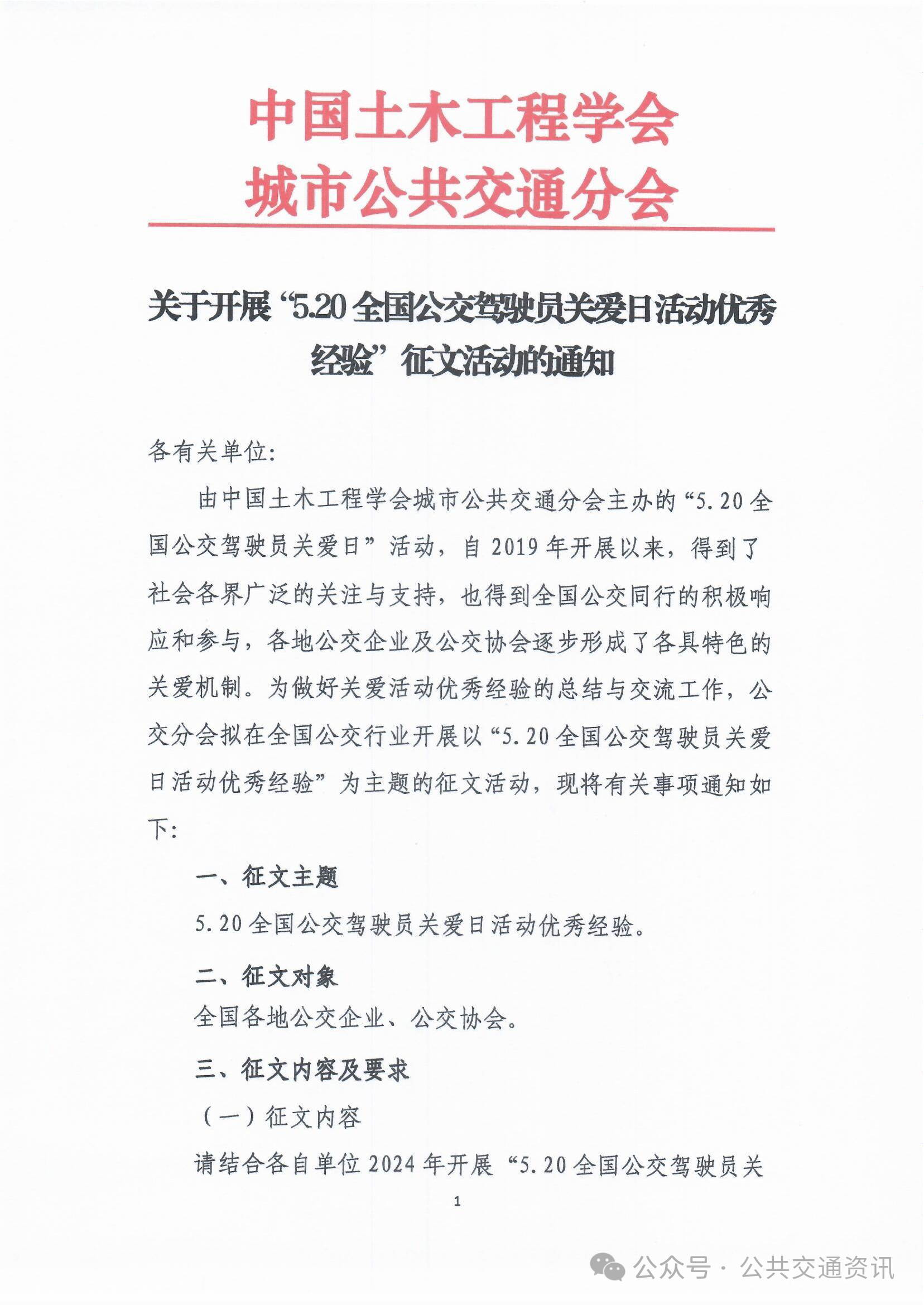 通知 | 5.20全国公交驾驶员关爱日征文活动