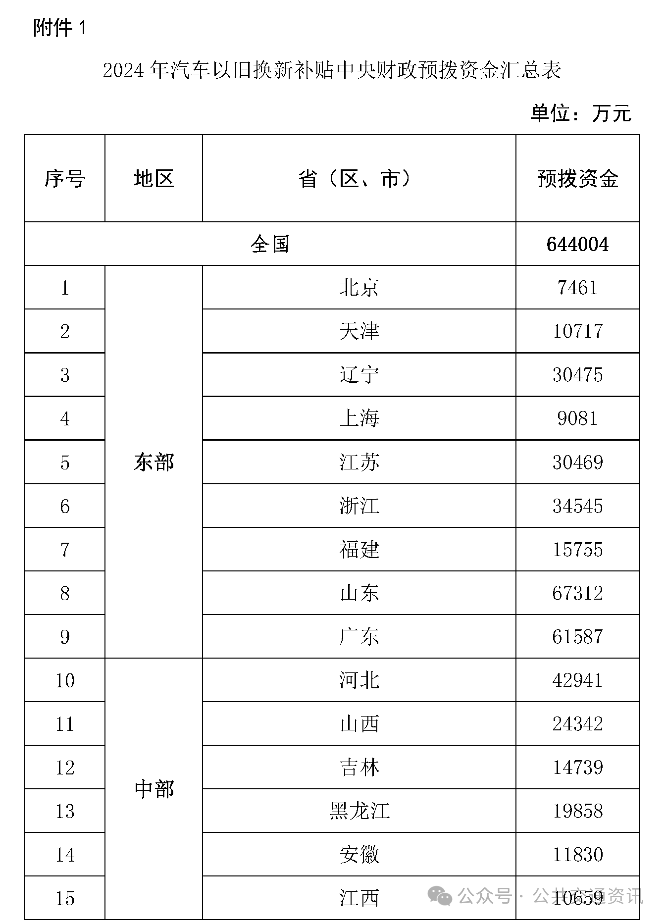 1.2024年汽车以旧换新补贴中央财政预拨资金汇总表