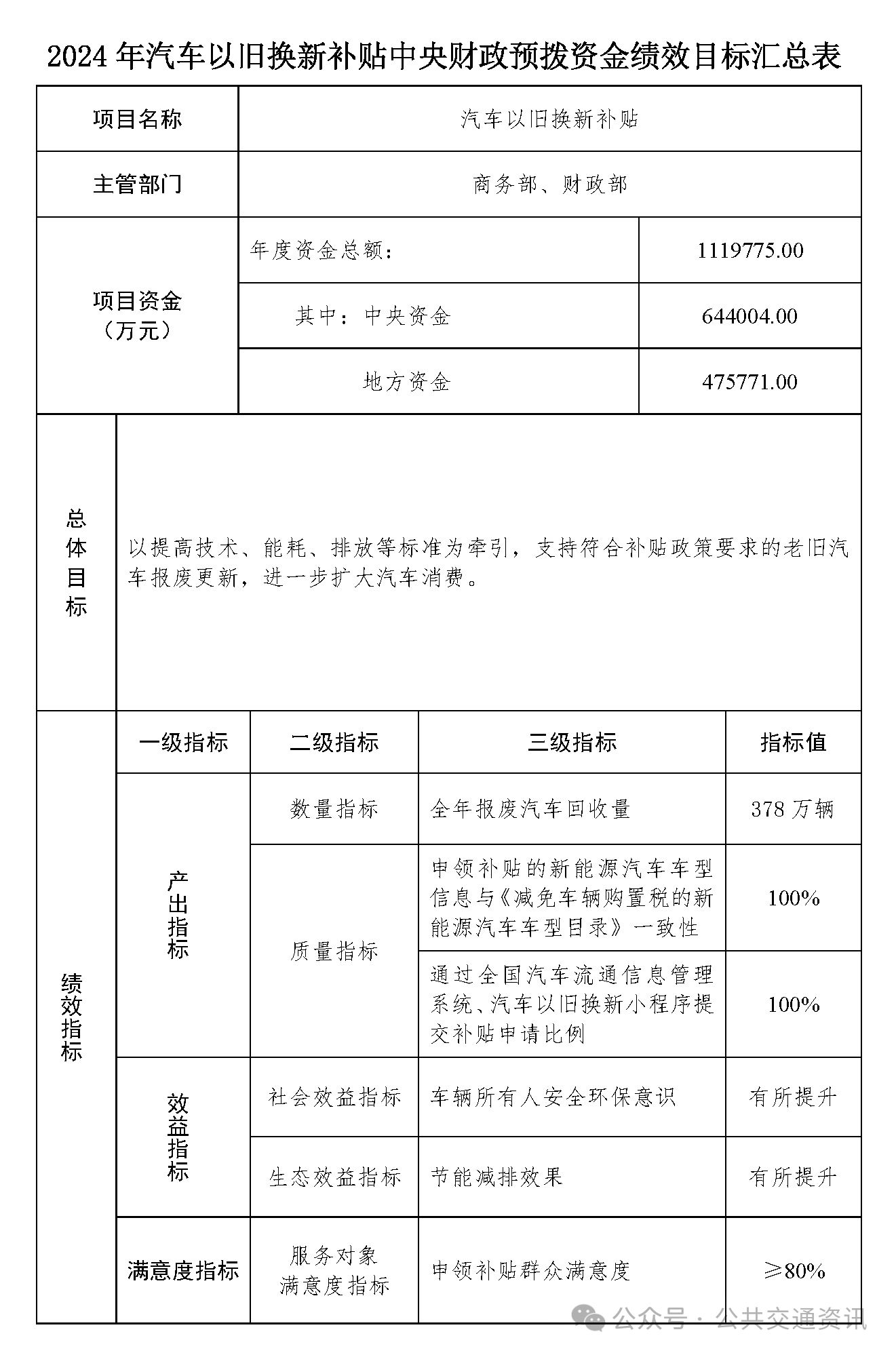 2.2024年汽车以旧换新补贴中央财政预拨资金绩效目标汇总表