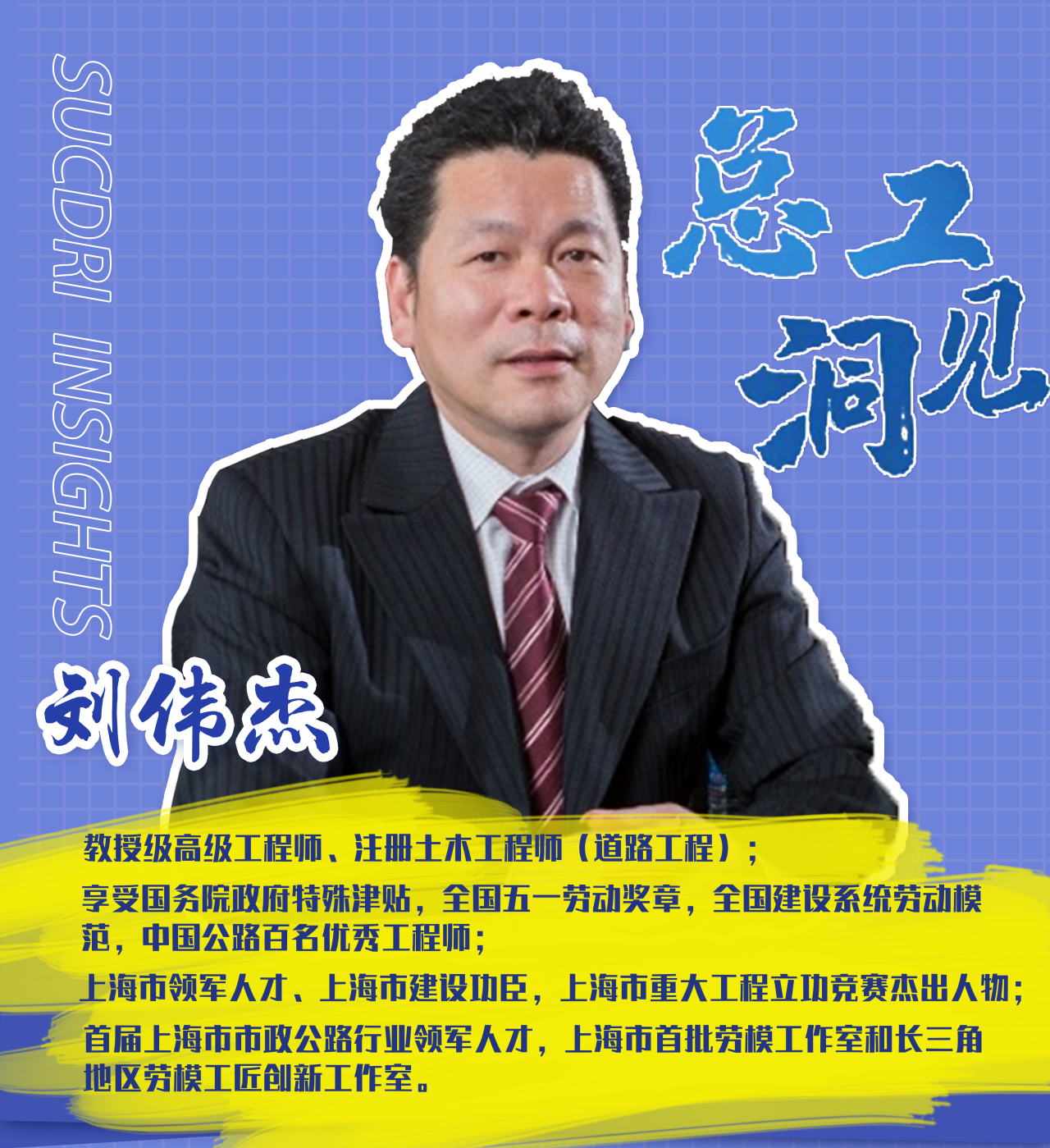 刘伟杰长期从事道路交通规划与设计工作,作为行业领军者,始终致力于解决道路、交通专业重大工程关键技术难点,大力推动道路与综合交通、城市规划、人工智能、生态环保、城市景观等学科的交叉融合及联动创新。他主持完成了沪嘉高速公路、苏州绕城高速公路、上海市外环快速路、虹桥枢纽路网规划、世博会交通专项咨询等多项重大工程及咨询项目,有力支持了城市交通的良性发展和政府的重大决策。刘伟杰始终秉持着饱满的职业热情和敏锐的创新精神,为我国城市与交通的健康发展做出了卓越的贡献。