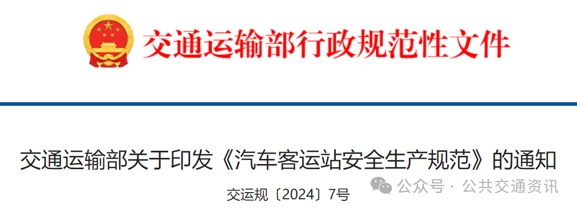 交通运输部关于印发《汽车客运站安全生产规范》的通知各省、自治区、直辖市、新疆生产建设兵团交通运输厅(局、委):现将修订后的《汽车客运站安全生产规范》印发给你们,请遵照执行。