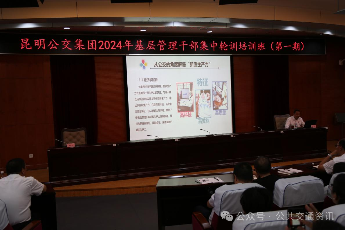 最近,“新质生产力” 成为热门词汇,首次被写入政府工作报告后,更是成为 “两会时间” 的高频词。为深入探究 “什么是新质生产力” 以及 “它会给公交行业带来哪些机遇”,昆明公交集团在本期基层管理干部集中轮训中,特别邀请集团公司党委委员、副总经理马力进行授课讲解。