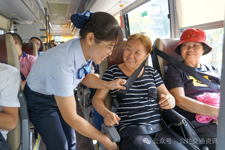 同时,现场安全员也会对乘客携带行李进行安检,严禁携带易燃易爆等危险品乘车。在每班车发车前,安全员都会对每一位乘客佩戴安全带和座位情况进行检查,杜绝超载出场情况。