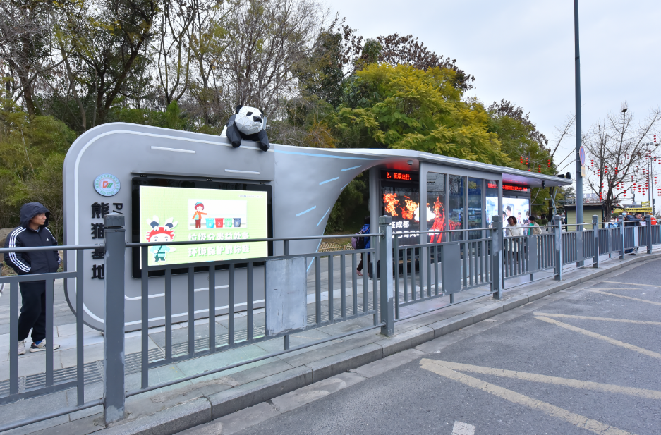 以“胖达”为主题,将熊猫元素融入智慧候车亭整体设计,结合市民游客出行需求,打造兼具趣味打卡点、智能报站功能、无线充电、自助寄存柜的候车空间,既是智能候车点,也是打卡拍照地!