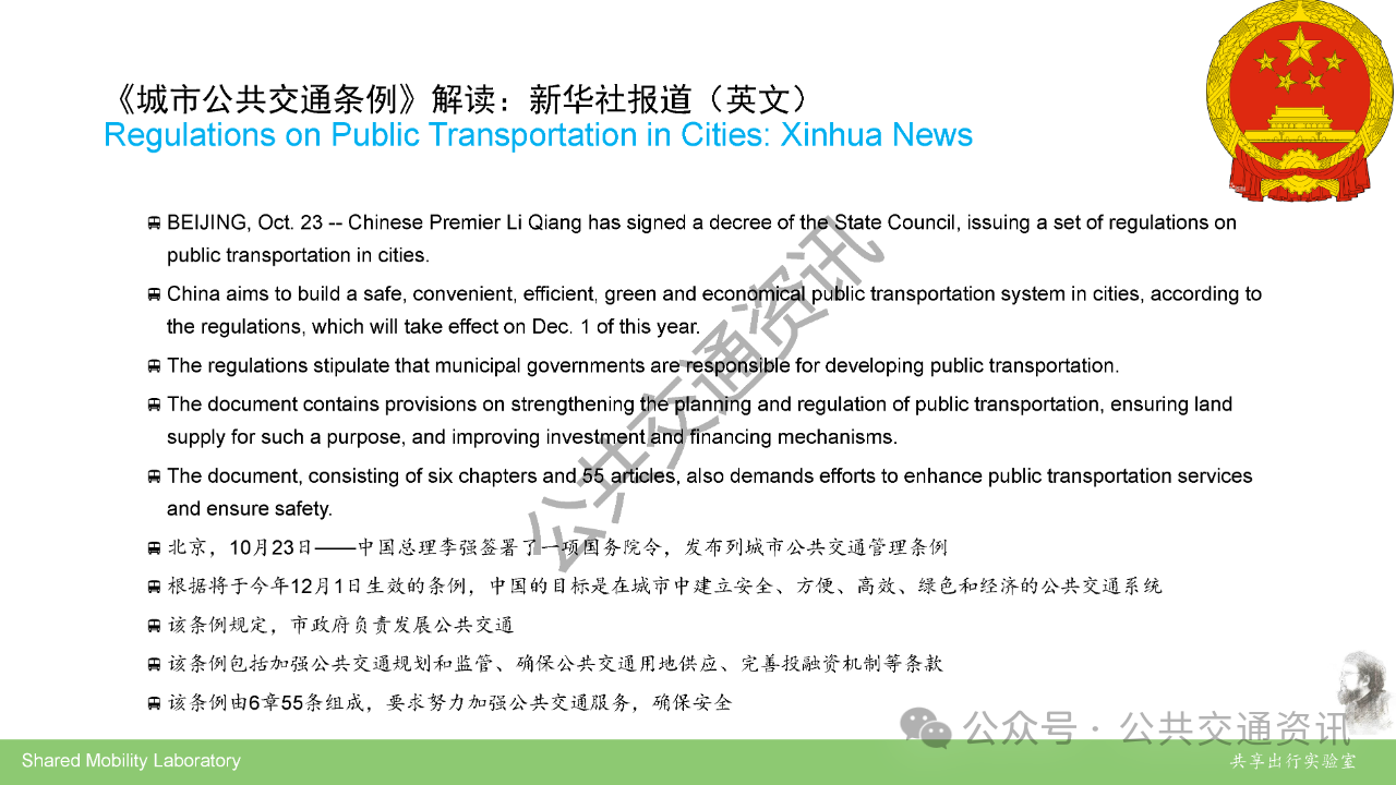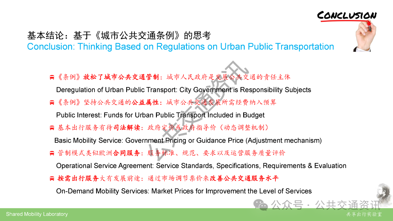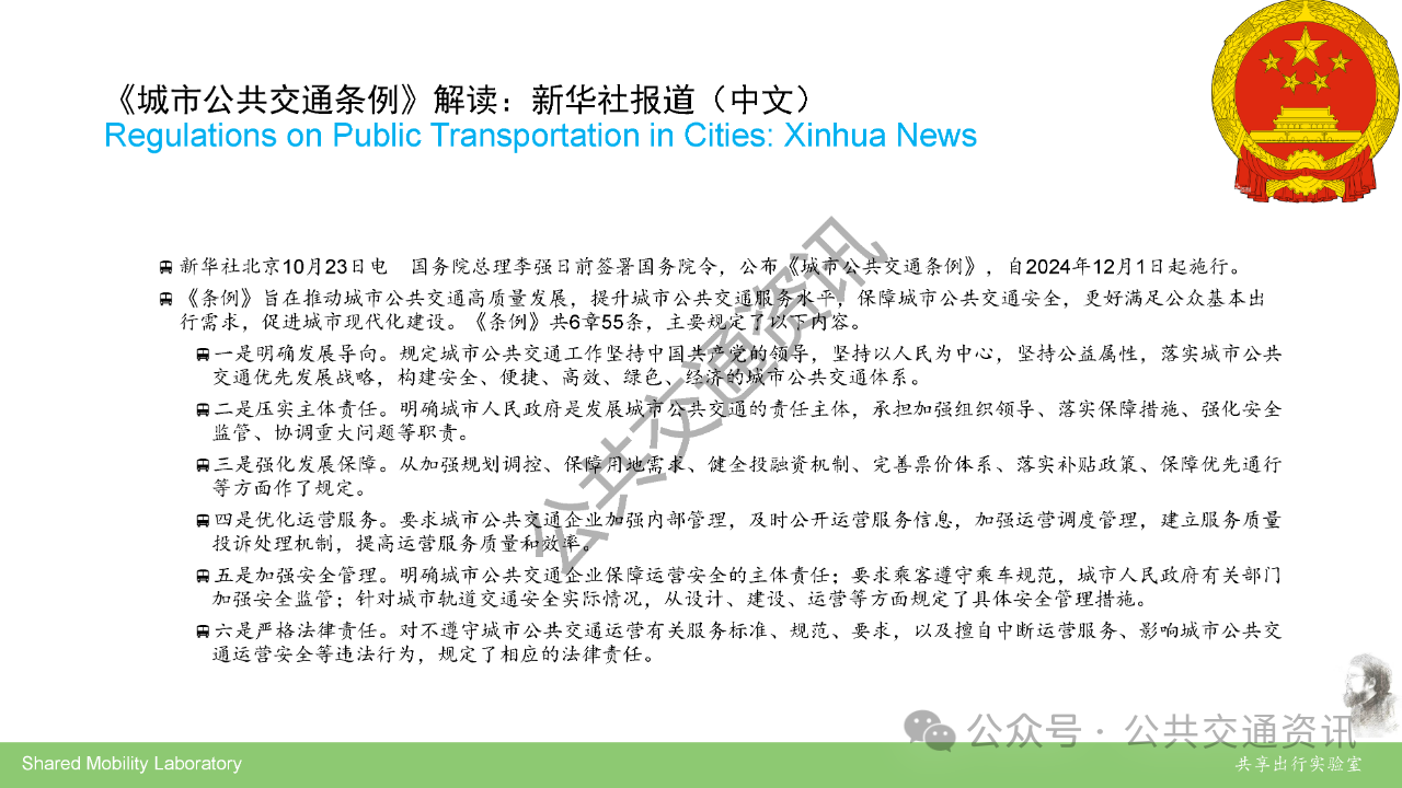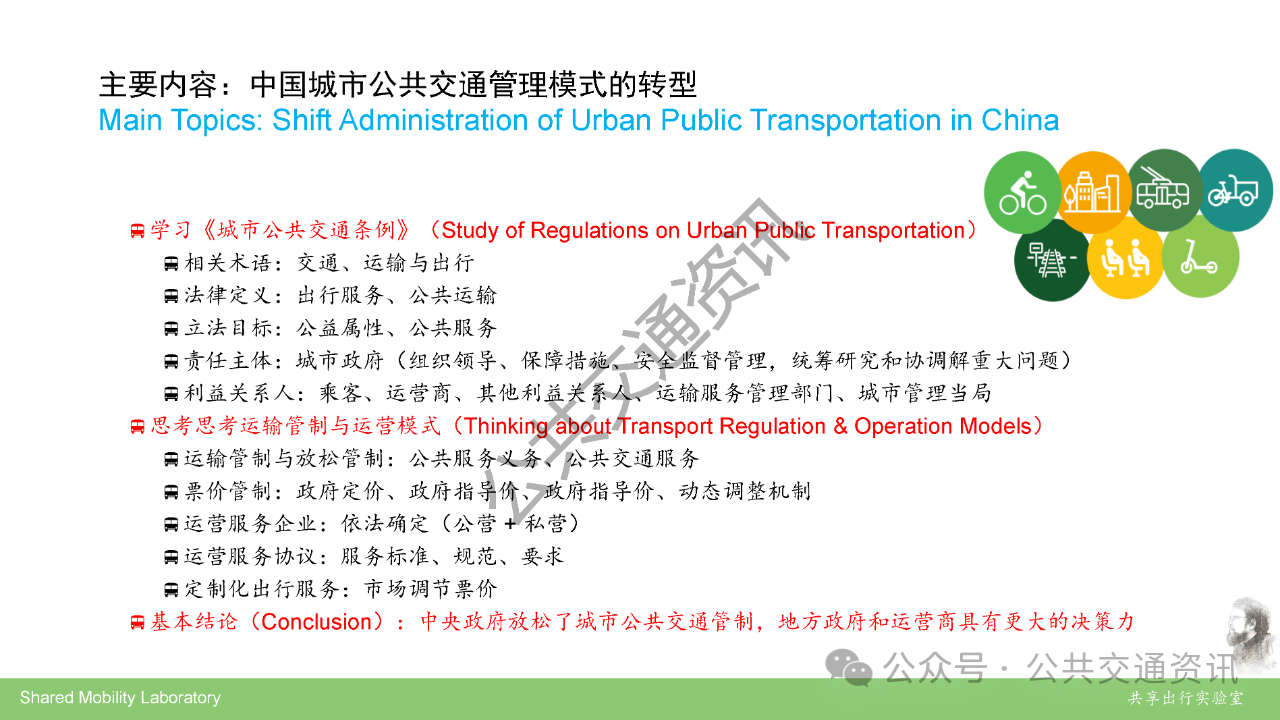 全国公共交通学科首席科学传播专家,重庆交通大学交通运输学院王健深入解读《城市公共交通条例》,指出条例实施将推动公交从“被动服务”向“主动治理”转变,通过介绍的国际经验和案例,进行国际化的深入比较,明晰坚持城市公共交通的公益属性与商业化运营的关系,才是确保城市公共交通可持续发展的关键。
