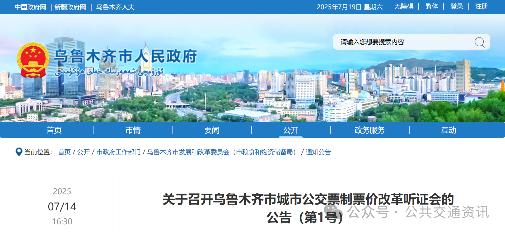 乌鲁木齐市拟召开“城市公交票制票价改革听证会”