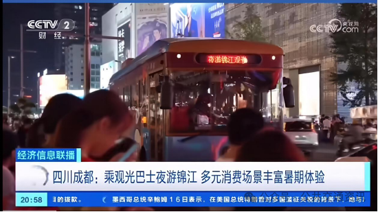 夜游锦江观光巴士的火爆,正是成都公交创新改革转型的生动展现。近年来,成都公交围绕景点、枢纽、赛会、夜间消费等场所,聚焦“景区直达+消费场景”双引擎,打造探索开行了三星堆景区直达专线、研学专线等多元化服务模式,打造夜游蓉城、火锅巴士等旅游消费沉浸式服务品牌,创新尝试开心巴士、青春巴士等“情绪巴士”,30+文旅出行黄金动线服务国内外游客假期旅游观光出行,助力文旅消费再升级。