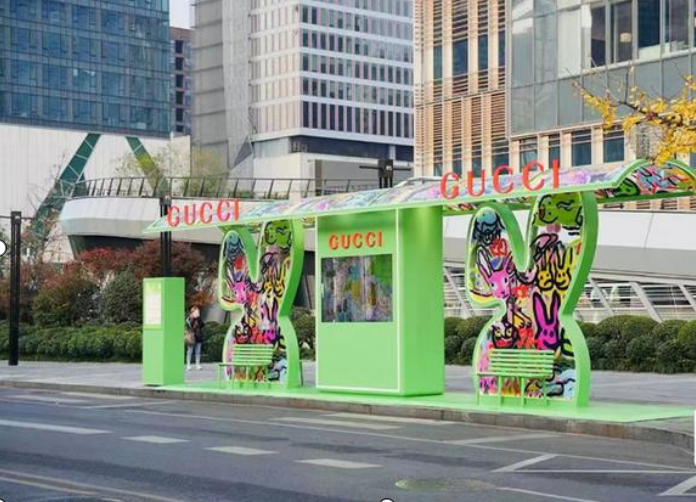 图4 成都城市创意站台新空间GUCCI兔年定制款候车亭