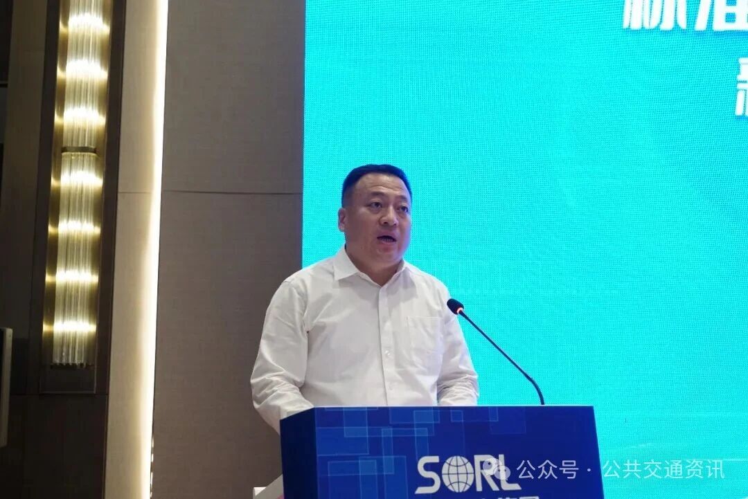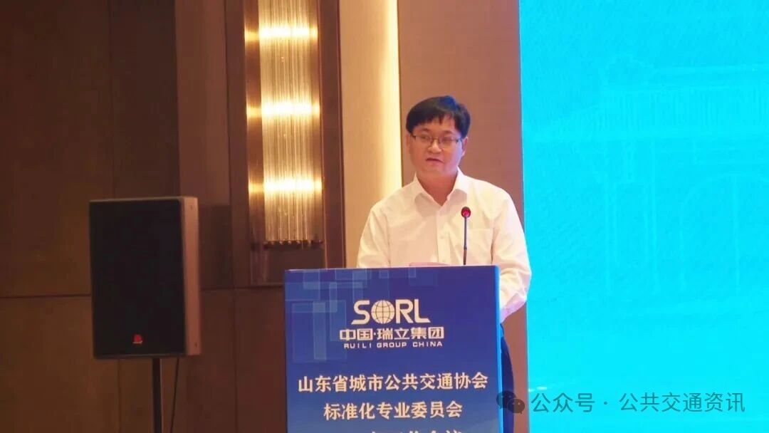 山东省城市公共交通协会标准化专业委员会副主任兼秘书长、济南公共交通集团有限公司党委委员、副总经理李峰作标准化专业委员会工作报告