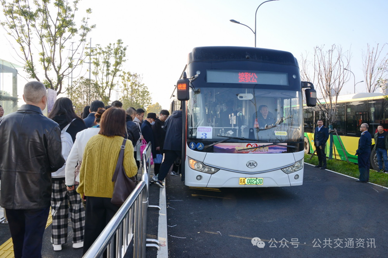 又一批轨道乘客在复兴集站换乘公交接驳专线继续前行。