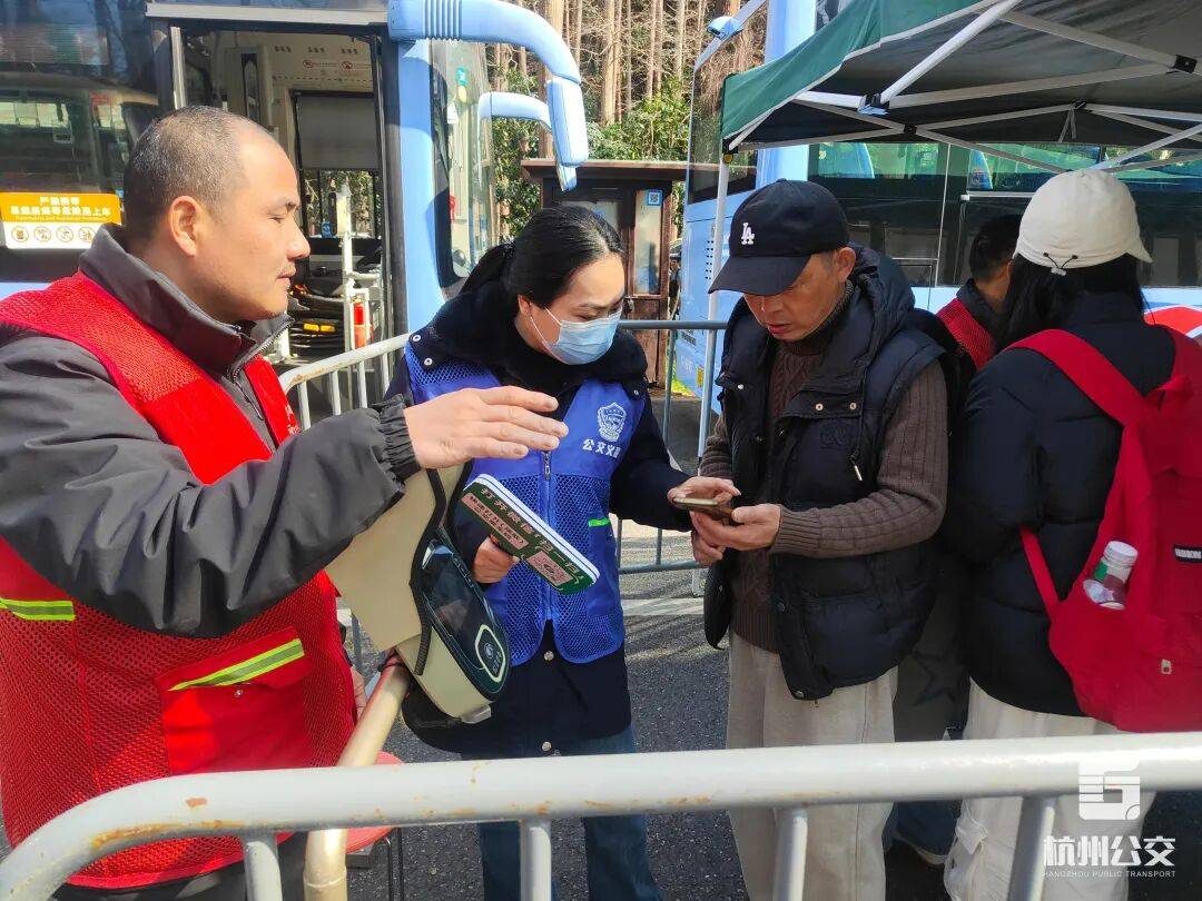 走进西湖景区,无论是龙翔桥、吴山广场,还是灵隐东、苏堤南口、长桥,每一个公交站点,都能看到公交人忙碌的身影,他们身着红马甲、蓝马甲,成为了新春祈福路、赏春路上,最贴心、最可靠的“指引人”。每天天还没亮,当第一班公交车缓缓驶出场站,他们就已到岗就位,直到深夜。