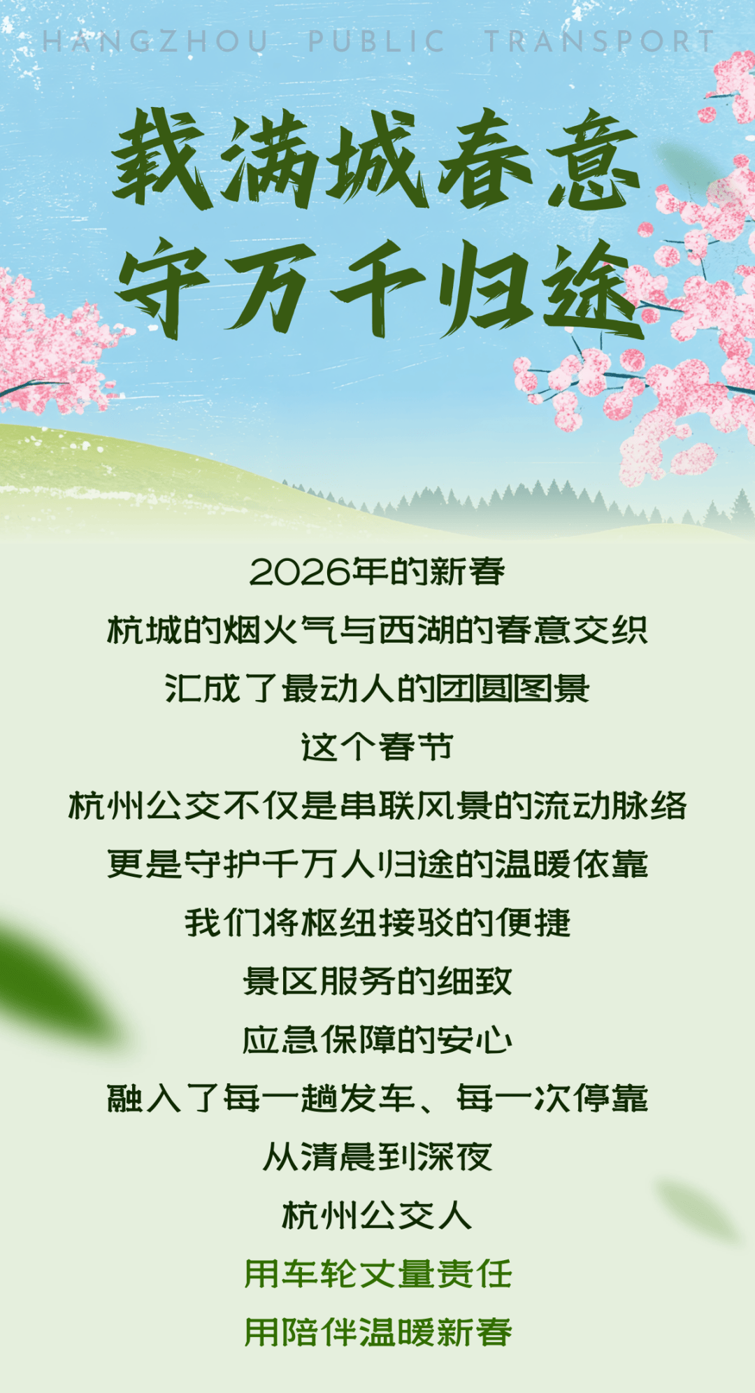 面对连续攀升的客流、持续繁忙的运营任务、分散多元的出行需求,杭州公交提前谋划、周密部署,从假期前的细致筹备、假期中的精准保障,到假期末的返程护航,全链条、全方位、全时段筑牢出行安全防线、提升运营服务品质,为广大市民乘客带来了安全、便捷、顺畅、暖心的新春出行体验。